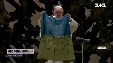 Папа Римский развернул желто-голубое знамя и поцеловал его на общей аудиенции. Он отметил, что получил этот украинский флаг из многострадальной Бучи. Папа Римский осудил зверства россиян в пригороде Киева. Он призвал положить конец этой войне и просит весь мир не забывать об Украине.