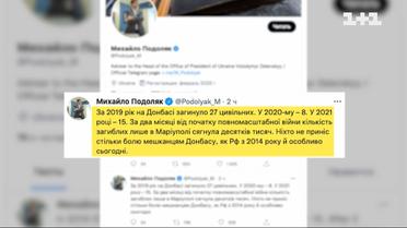 Михаил Подоляк сообщил в сообщении в твиттере, сколько гражданских погибло на Донбассе с начала войны.