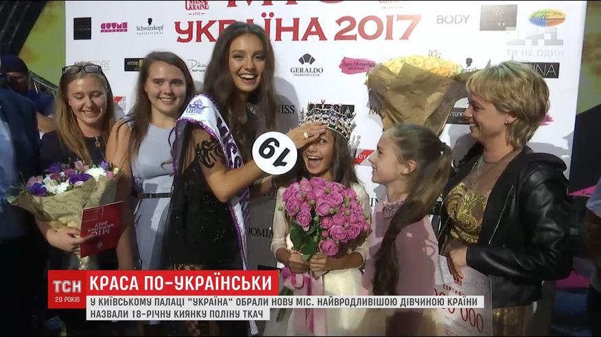 Накануне поздно вечером в столице определили победительницу конкурса "Мисс Украина-2017". Звание самой красивой незамужней украинки завоевала 18-летняя киевлянка Полина Ткач - студентка НАУ.