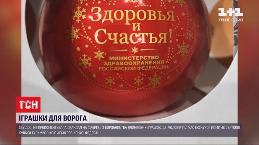 СБУ до сих пор не ответила на запрос ТСН о новогодних игрушках для министерства обороны России. Скандал вокруг фабрики елочных украшений в Киевской области возник в конце прошлой недели. Один из экскурсантов увидел, как мастера делают на шариках надпись "Армия России". Выложил видео в сеть, после чего на предприятие наведались полицейские и работники СБУ. Увидели они там и другие украшения с российской символикой и документы на заказ шариков Министерства обороны России.