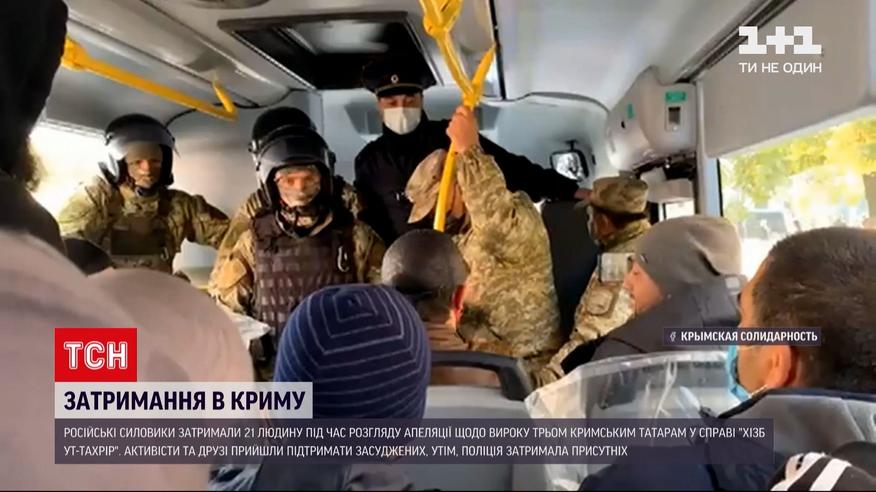 Российские силовики задержали 21 человека под зданием местного военного суда. Это преимущественно крымские татары, пришедшие на рассмотрение апелляции по делу организации "Хизб ут-Тахрир". Россия - единственная страна, где эта организация запрещена. А трех крымцев в пределах этого дела приговорили к 12-17 годам лишения свободы. Их и пришли поддержать активисты и друзья.