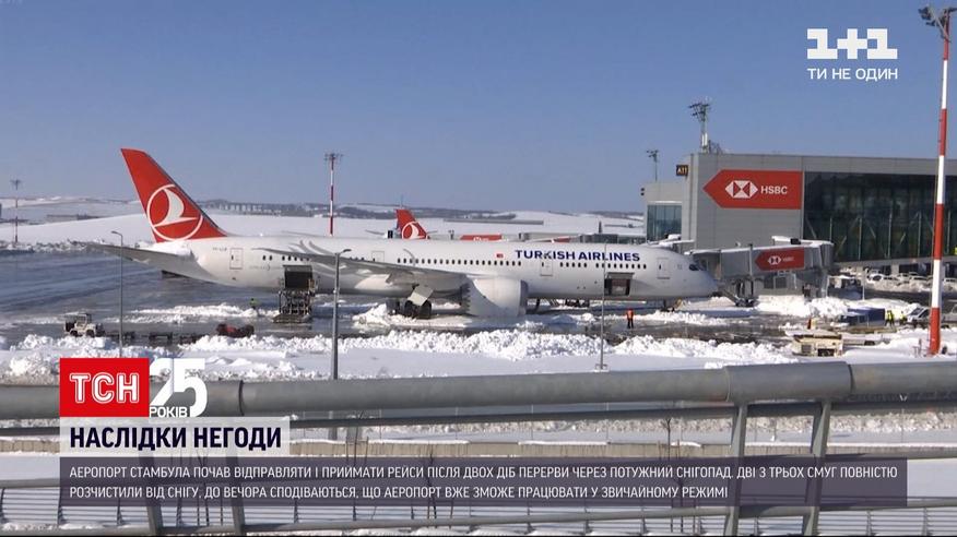 Аэропорт Стамбула возобновил работу после аномального снегопада. После временного закрытия начался перезапуск рейсов. Сегодня в 12:45 вылетел самолет и киевского аэропорта "Борисполь". Работники турецкой авиаслужбы поблагодарили пассажиров за терпение. Из-за непогоды тысячи людей оказались заблокированными: десятки рейсов отменили, закрыли также дороги, ведущие в аэропорт. В частности, застряли и многие украинцы, которым приходилось ждать рейсы домой.