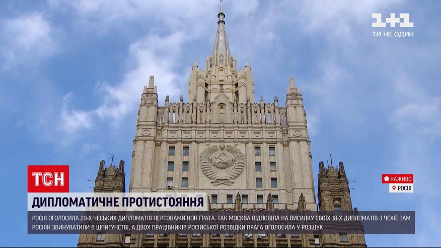 Дипломатический скандал между Москвой и Прагой углубился: Россия высылает практически все чешское посольство, двадцать дипломатов объявлены персонами нон грата, до конца этого дня они должны покинуть страну. Это - шаг в ответ на высылку из Чехии 18 сотрудников российского посольства, которых Чехия официально назвала представителями спецслужб. На прямой связи из Праги корреспондент Радио Свобода Сергей Стеценко, а из Москвы - корреспондент УНИАН Роман Цимбалюк - смотрите.