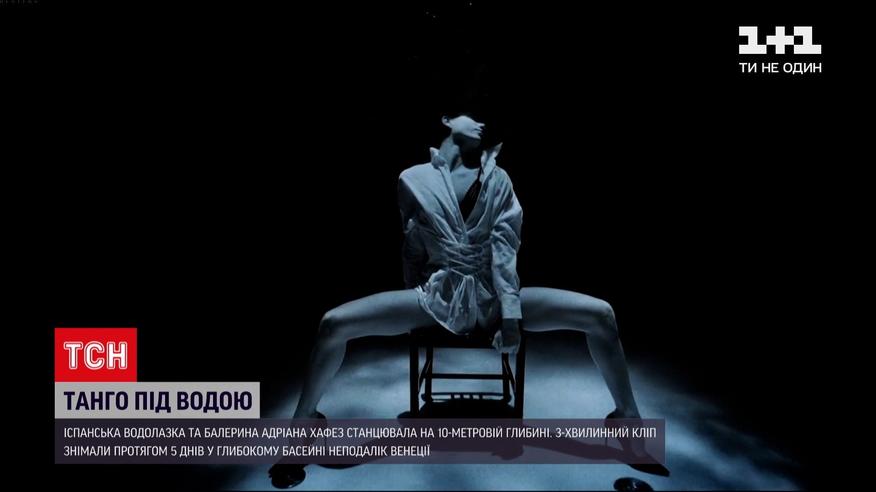Танго под водой. Испанская водолазка и балерина Адриана Хафез станцевала на 10-метровой глубине. А также выпустила об этом трехминутный клип. Снимали 5 дней в глубоком бассейне неподалеку Венеции. И, чтобы все снять, понадобилось 120 раз нырять под воду. Танцовщица просит не повторять такое без спецподготовки. Однако выглядит это - увлекательно.