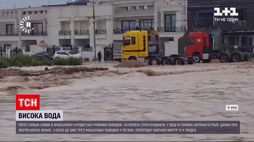 Разрушительные паводки в иракском Курдистане. Из-за сильных ливней затоплена столица региона - город Эрбиль. О жертвах пока неизвестно. Затоплены сотни домов. И одна из главных автомагистралей, которая проходит вокруг города. Ущерб местные власти только подсчитывают. Из-за стихии студентам перенесли все экзамены. С осени это уже третьи масштабные паводки в городе.