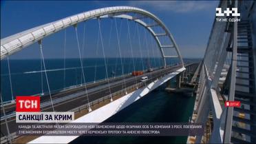 Крымские санкции. Канада и Австралия вместе ввели новые ограничения против России за оккупацию полуострова. В канадском списке оказалось двое физических лиц и четыре компании. А в австралийском - одно лицо и четыре компании, причастные к незаконному строительству моста через Керченский пролив. Керченский мост - это попытка закрепить контроль России над незаконно аннексированным Крымским полуостровом, отметили в австралийском МИД.