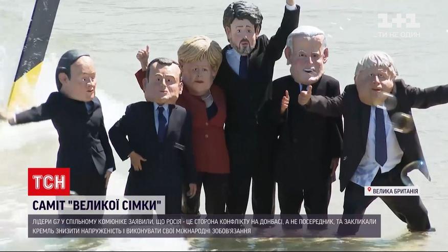 Россия - сторона конфликта на Донбассе, а не посредник. Об этом говорится в совместном заявлении лидеров G7, которую они обнародовали после трехдневного саммита, который завершился в Британии. "Большая семерка" также призвала Кремль снизить напряженность, выполнять свои международные обязательства и отвести войска и технику от границ Украины и Крыма.