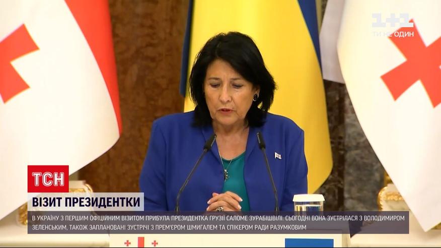 Взаимопомощь на пути в НАТО и ЕС, а также совместные усилия по безопасности в Черном море: об этом говорили президенты Украины и Грузии. Саломе Зурабишвилли в Украине с официальным визитом. Это первая женщина в Грузии, занимающая должность президента. В Киеве после переговоров с Владимиром Зеленским еще встретится премьер Шмыгаль и спикер Разумков.