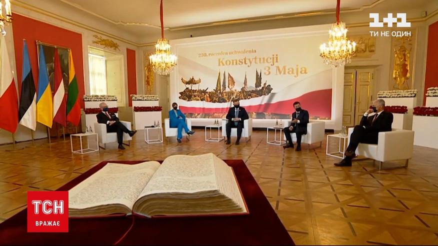 Украина, Польша, Латвия, Литва и Эстония - вместе и дальше будут отстаивать европейскую демократию. Об этом в частности, говорится в совместной декларации, которую подписали лидеры этих пяти стран в Варшаве. Там состоялись торжества по случаю 230-летия так называемой Конституции 3 мая. Ее принял польский сейм 179 года, и ее считают первым демократическим основным законом в Европе, который вступил в силу.