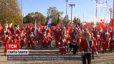 В теплых Афинах несколько сотен участников в бело-красных костюмах и шляпах пробежали два километра. Билет стоил 12 евро – все собранные деньги пойдут на благотворительность. В заснеженном Косово – из сотни «Сант» бежали свой мини-марафон в полушубках. Среди участников было немало школьников. А вот в Будапеште – несмотря на несколько местных устроили обнаженный санта-забег. Только в нижней и красной шляпах, выкрикивая «хо-хо-хо!» – дефилировали по центру города, ловя удивленные взгляды прохожих.