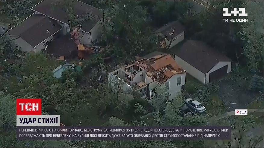 Десяток человек травмированы, 35 тысяч остались без света из-за сильного шторма в пригородах американского Чикаго. Вслед за обильным ливнем и молниями пришли торнадо, порывы ветра превышали сто километров в час, около сотни домов - серьезно повреждены. Спасатели предупредили людей максимально осторожно передвигаться, ведь вокруг множество оборванных проводов электропередач, до сих пор под напряжением.