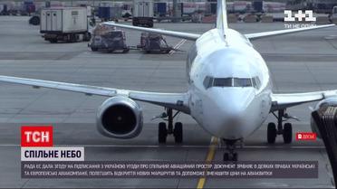 Документ, благодаря которому могут подешеветь авиабилеты. Совет Евросоюза дал согласие на подписание с Украиной соглашения об общем авиационном пространстве. Его цель: облегчить открытие новых маршрутов между украинскими и европейскими городами, уравнять в некоторых правах наши авиакомпании. Ожидается также переход на европейские стандарты и правила в сфере авиаперевозок. Само подписание этого соглашения должно состояться осенью. На это решение уже отреагировал украинский президент.
