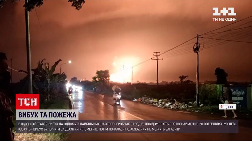Пылает на полнеба. В Индонезии эвакуировали более полутысячи человек из-за пожара на одном из крупнейших нефтеперерабатывающих заводов страны. Занялось после взрыва. Пожар мгновенно охватил всю территорию завода. Сообщают о не менее 20 пострадавших. Людей с ожогами госпитализировали. Местные жители говорят - взрыв был слышен за десятки километров. Над заводом поднимаются столбы дыма и пламени. Пожар не могут потушить уже несколько часов.