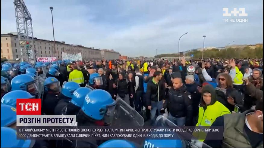 Водометы и слезоточивый газ. Итальянская полиция жестко разогнала митингующих в портовом городе Триест, протестовавших против "ковид-паспортов". Около тысячи демонстрантов - среди них и непривитые докеры, которых не пускают на работу, - устроили сидячий протест, чем заблокировали один из входов в порт. После нескольких часов противостояния полицейские разогнали митинг.