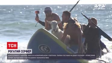 Новости мира: на Калифорнийском побережье мужчина вместе со своим козлом покоряли волны