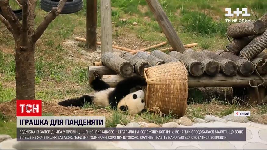 Игрушка для панденка. Медвежонок с заповедника в китайской провинции Шэньси случайно натолкнулся на соломенную корзину. Она так понравилась малышу, что он больше не хочет других игрушек. Панденок часами корзину толкает, крутит и даже пытается спрятаться внутри. Эти веселые игры сняли работники заповедника и поделились забавными кадрами с пользователями соцсетей.