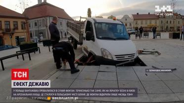 Новости мира: в польском городе Бохня грузовик провалился в сухой фонтан