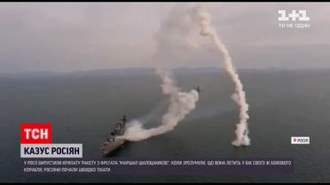 Выпустили ракету, а она едва не поразила их самих. Такой казус произошел в России. Крылатую ракету выпустили с фрегата "Маршал Шапошников". Когда же поняли, что летит она в сторону своего же боевого корабля, россияне решили быстро бежать. И именно это спасло и фрегат, и его экипаж. Они оправдываются, мол, это был не пуск крылатой ракеты, а лишь тестовый запуск макета с пороховым зарядом.