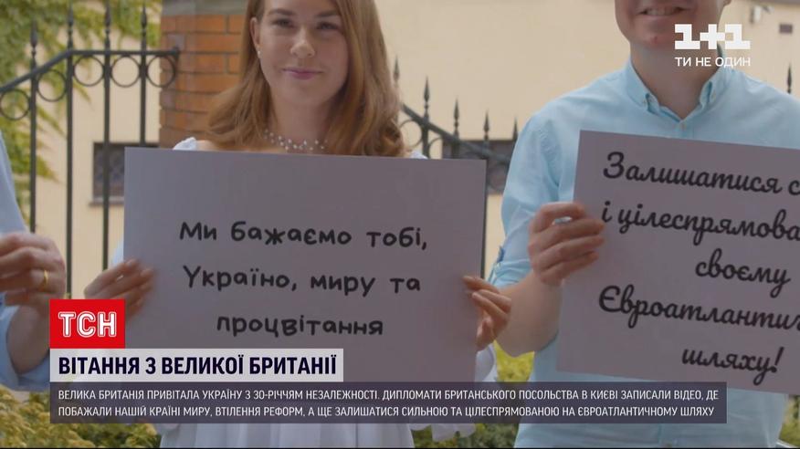 Для меня ты замечательный пример силы и веры в себя. Такими словами Великобритания поздравила Украину с 30-летием Независимости. Дипломаты британского посольства в Киеве записали видео поздравления. Нашей стране они пожелали воплощения всех реформ, мира, процветания, а еще оставаться сильной и целеустремленной на своем Евроатлантическом пути. Наконец руководительница британского посольства Мелинда Симмонс передала поздравления на украинском.