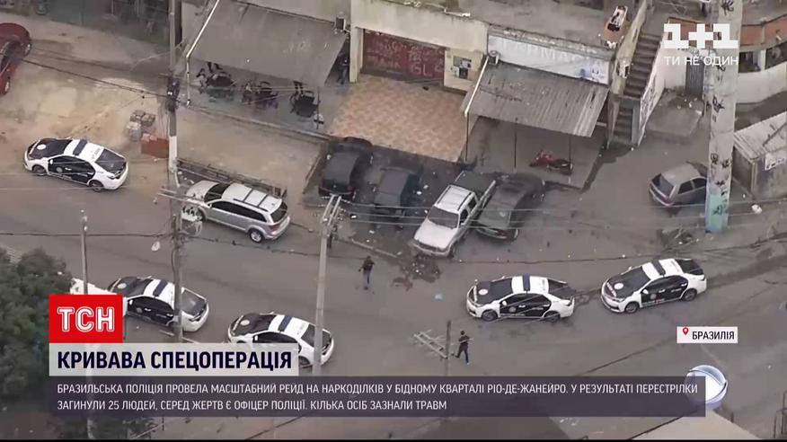 Кровавая перестрелка. Во время спецоперации полиции по перехвату наркодельцов в Рио-де-Жанейро погибли 25 человек. По меньшей мере 10 человек задержали. Их подозревают не только в незаконном обороте наркотиков, но и в многочисленных грабежах пассажиров с пригородных поездов. В деталях криминальной истории разбиралась ТСН.