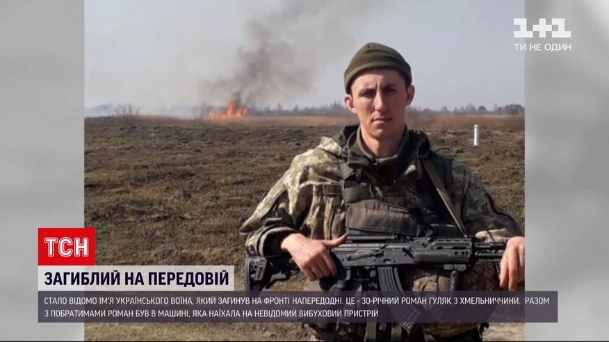 Стало известно имя украинского воина, погибшего на фронте накануне. Это - 30-летний Роман Гуляк из Хмельницкой области. Контракт он подписал 3 года назад. Вместе с собратьями Роман был в машине, которая в зоне проведения операции объединенных сил наехала на неизвестное взрывное устройство. Роман погиб на месте. Трех бойцов госпитализировали. Их состояние сейчас медики оценивают как удовлетворительное. Больше о войне на Востоке Украины