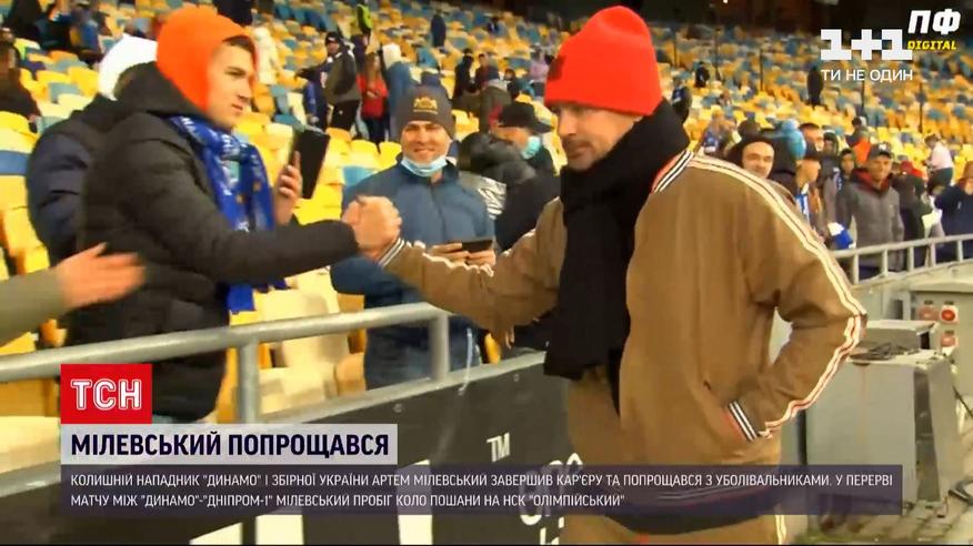 Со слезами на глазах и под аплодисменты зрителей - Артем Милевский накануне попрощался с болельщиками киевского "Динамо", однако не в последний раз. Во время перерыва матча "Динамо - Днепр-1" Милевский пробежал круг почета на НСК "Олимпийский". 36-летний форвард недавно объявил о завершении футбольной карьеры, лучшие годы которого пришлись на игру за киевское" Динамо "и сборную Украины.