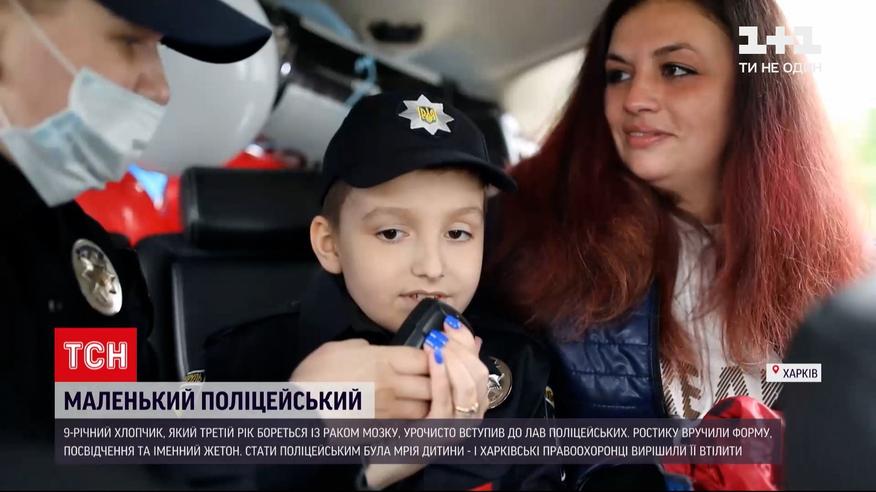 Осуществить детскую мечту. Харьковские копы на несколько часов устроили праздник для 9-летнего Ростика. Уже третий год он борется с тяжелым недугом. У ребенка - рак мозга. И чтобы поддержать мальчика, патрульные приняли его в свои ряды. Ведь больше всего Ростик мечтает быть полицейским и ловить преступников. Со всеми торжествами он принял присягу возле управления патрульных. Там ребенку вручили форму, удостоверения и именной жетон. А после этого с мигалками и сиренами Ростик поехал патрулировать город.