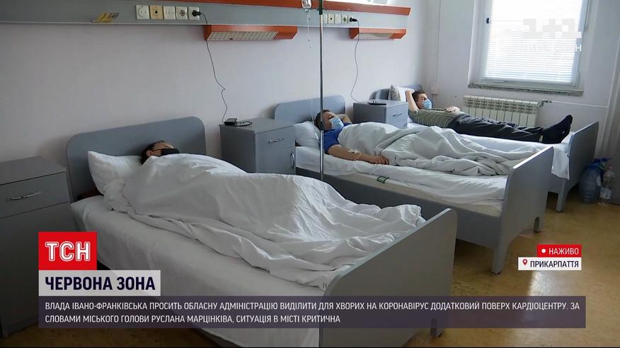 Более 400 новых больных, 16 умерли - это коронавирусная статистика Прикарпатья за последние сутки. Городской председатель Ивано-Франковска Руслан Марцинкив просит отдать для больных коронавирусом дополнительный этаж областного кардиоцентра. Потому больницы города переполнены. Больше - в прямом включении.