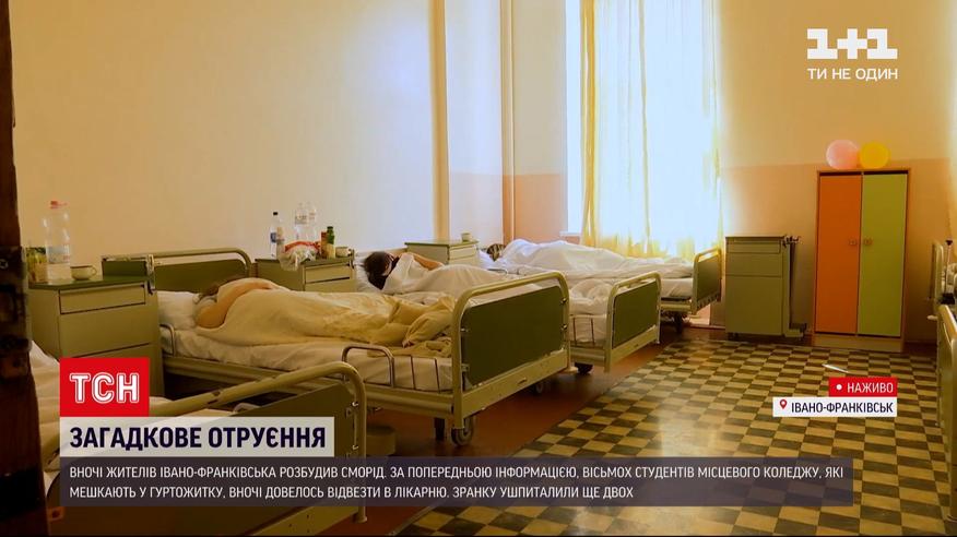 Чрезвычайное происшествие в Ивано-Франковске. Ночью жителей микрорайона разбудил неприятный запах. Из-за вони пришлось даже эвакуировать студентов здешнего колледжа, которые жили в общежитии. Впрочем предварительно восемь из них таки отравились неизвестным веществом. Сейчас они в больнице. Как чувствуют себя студенты и известна ли уже причина их болезни - в прямом включении.
