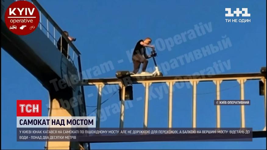 Новости Украины: киевлянин ради "лайков" проехался на самокате балкой Пешеходного моста