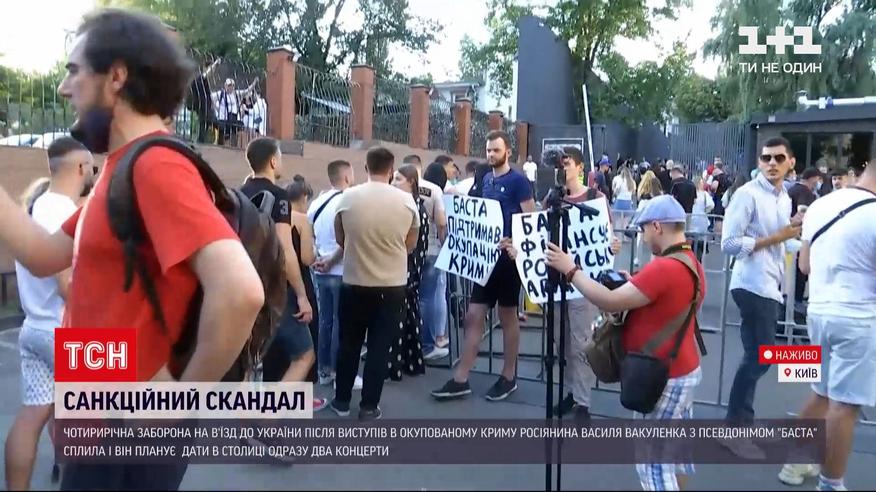 И в эти минуты в столице должен начаться концерт российского рэпера "Басты". Четырехлетний запрет на въезд в Украину из-за выступления исполнителя в оккупированном Крыму завершилась в августе прошлого года. После - в Службе безопасности Украины его продлили. Так что сейчас там происходит и много ли протестующих собралось - смотрите в прямом включении.