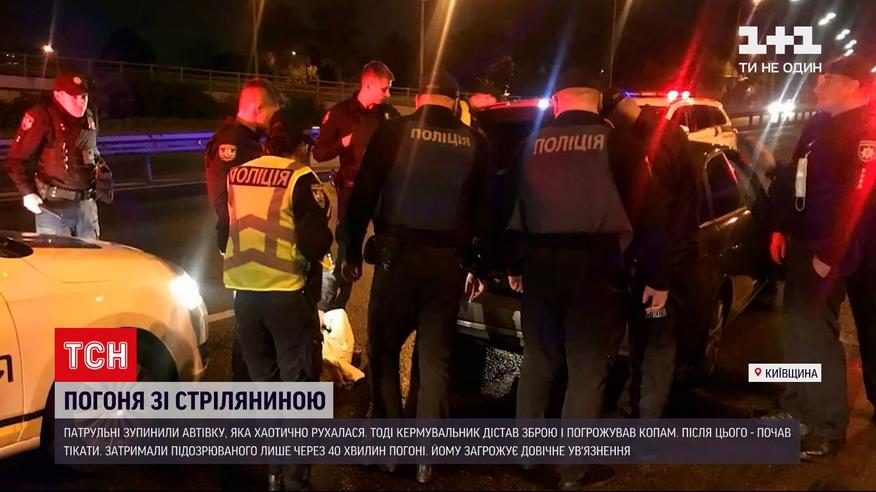 Стрельба в пригороде Киева. Ее открыл водитель, которого преследовала полиция. Патрульные остановили водителя "Ауди", который хаотично двигался по дороге, в Вышгороде. На что водитель достал оружие и направил его в сторону правоохранителей, после этого начал убегать. Во время преследования мужчина выстрелил 8 раз. Задержать его удалось лишь за 40 минут преследования в Печерском районе Киева. Выяснилось, что водитель был пьян.