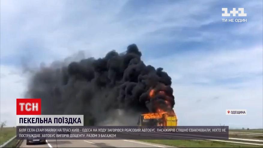 Новости Украины: на трассе "Киев-Одесса" полностью выгорел рейсовый автобус