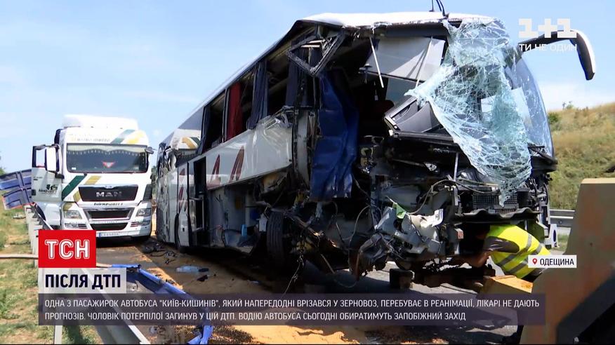 В крайне тяжелом состоянии остается пассажирка автобуса "Киев - Кишинев", который накануне врезался в зерновоз. Женщина в реанимации на аппарате искусственного дыхания, без сознания. Еще двое пострадавших - в состоянии средней тяжести.