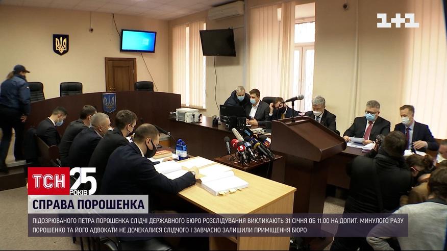 Он должен явиться в Государственное бюро расследования 31 января. До этого пятый президент в ДБР был в понедельник, но в бюро говорят: этот визит закончился ничем - адвокаты знали, что следователь подойдет к ним через несколько минут, но Порошенко ждать его не стал и покинул помещение. Адвокаты же заявили: пятый президент приходил не на допрос, а заявить об отводе следователя.