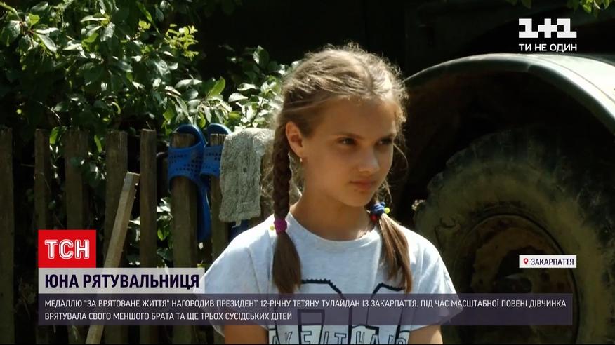 "За спасенную жизнь". Такой медалью наградил украинский президент 12-летнюю Татьяну Тулайдан с Заркапаття. Девочка во время масштабного подтопления спасла своего младшего брата и еще трех соседских детей. Вода прибывала очень быстро. Впрочем, Татьяна не растерялась - выключила все электричество, собрала маленьких детей и отвела их на второй этаж, куда ни достигала наводнение.
