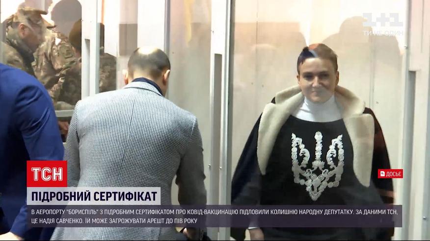 Арест до полугода может угрожать Надежде Савченко за использование поддельного COVID-сертификата. О том, что бывшая народная депутат и ее родственница пытались использовать фальшивый сертификат о вакцинации, сегодня сообщила национальная полиция Украины. По информации ТСН, фигурантки дела - именно Надежда Савченко и ее сестра Вера. По фальшивым сертификатам они пытались въехать в Украину, но пограничники аэропорта Борисполь увидели в предоставленных документах явные признаки подделки.