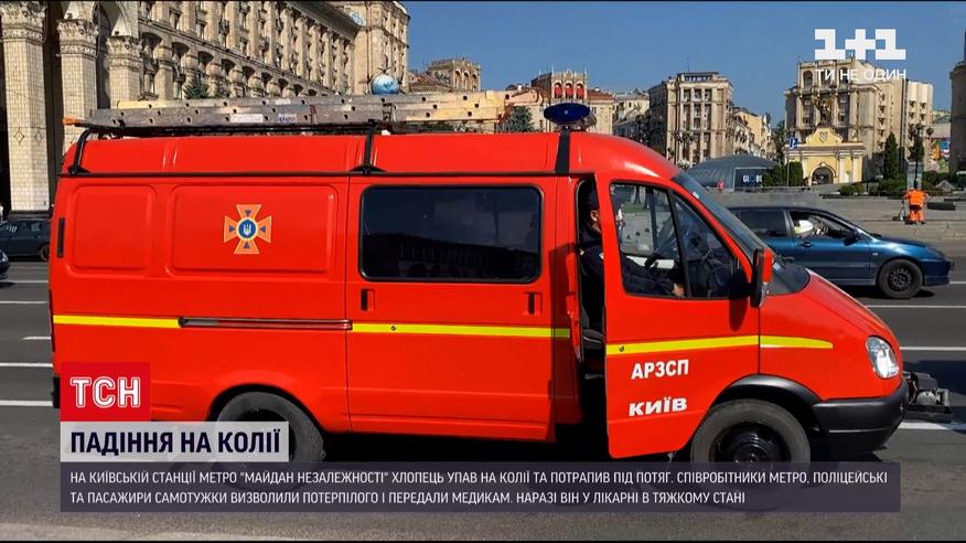 ЧП в киевском метро. На станции "Майдан Незалежности" мужчина упал на рельсы и попал под поезд, его зажало между вагонами. Движение в метро на несколько часов было заблокировано. Пассажира пытаются спасти в одной из столичных больниц. Что стало причиной опасного падения - полицейские выясняют. Не исключают версию попытки самоубийства или потери сознания от жары. Сейчас парень в реанимации.