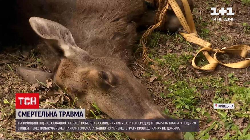 Не вышла из наркоза. В Ворзеле под Киевом во время сложной операции умерла лосиха, которую спасали накануне. Стадо лосей зашло к людям во двор. Когда бежали, молодая лосиха решила перепрыгнуть через забор. Сделала это неудачно и сломала заднюю ногу. Ветеринары, зоозащитники и спасатели рану зафиксировали, лосихе вкололи обезболивающее и повезли в центр реабилитации для диких животных. Там сделали операцию, но из-за потери крови животное до утра не дожило.