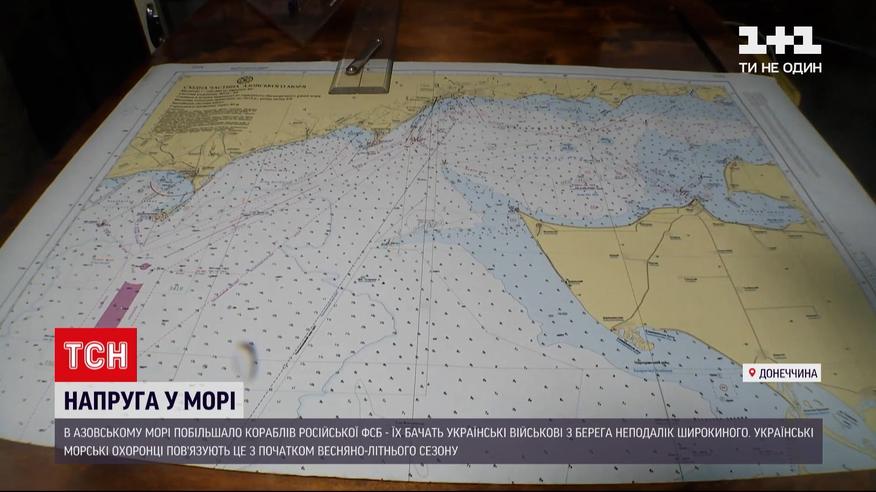 Их стало больше в Азовском море. Кораблей российской ФСБ. И их видят даже с берега украинские военные, обороняющие самый южную участок фронта в районе Широкино. В то же время, украинские морские охранники утверждают: увеличение количества вражеских катеров связана с началом весенне-летнего сезона. На патрулирование в море вышла и наша съемочная группа.