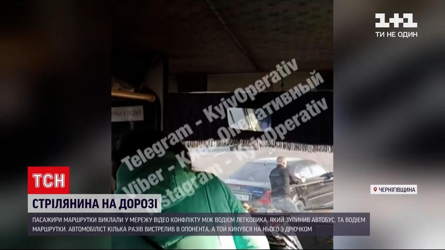 Вытащил из ноги пулю и поехал дальше. Стрельбой свершился спор между водителем маршрутки и водителем мерседеса в Черниговской области. На видео, которое выложили в сеть пассажиры маршрутки, попала кульминация конфликта - причины его остаются неизвестными. Возле села Прогресс легковушка перекрыла дорогу автобусу, его водитель с пистолетом приказал водителю маршрутки выйти. Тот, вооружившись палкой, пошел на встречу - раздалось несколько выстрелов.