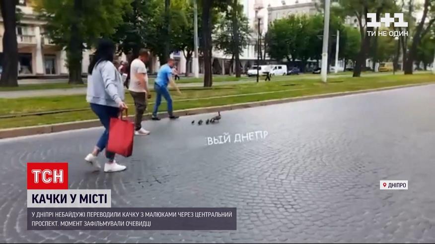 Новости Украины: в Днепре прохожие переводили утку с малышами через центральный проспект