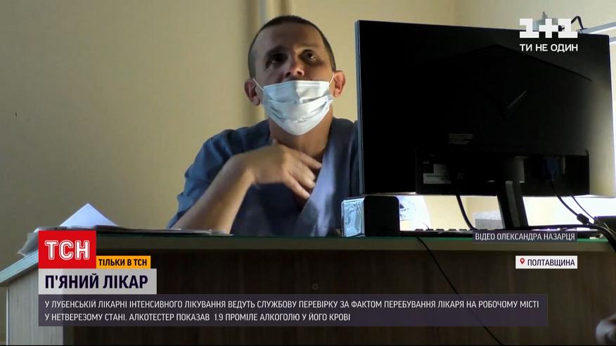 Пьяный заведующий реанимации. В Лубнах, когда в отделение интенсивной терапии, где больные коронавирусом находятся на кислородной поддержке и аппаратах ИВЛ, приехала проверка - главу отделения застали в нетрезвом состоянии. Алкотестер показал 1.9 промилле алкоголя в его крови. Депутаты приехали проверять эту реанимацию после жалобы родственников. Дочь пациента, умершего в этой реанимации утверждает, что за больными там плохо ухаживают - не дают пить, не моют и не переодевают лежачих пациентов.