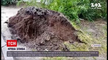 Затопленное Запорожье. Ночной ливень превратил окрестности города в реки. Ливневки не могли справиться с таким количеством осадков: за несколько часов налило чуть ли не по колено. На выезде из областного центра образовались гигантские пробки: машины не могли преодолеть водную преграду. А в Николаеве сильный ливень повалил огромную акацию: дерево упало прямо на пятиэтажку и оборвало провода.