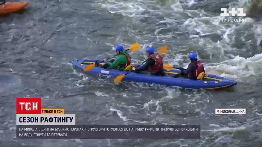 Сезон большой воды. В Николаевской области на бугских порогах инструкторы готовятся к наплыву туристов -тренуються выходить на воду, тонуть и спасать, выплывать и получать удовольствие. Прошлый карантинный год увеличил количество людей, которые решили попробовать себя в рафтинге. Холодная ли вода в Южном Буге уже сейчас - ТСН проверила на себе.