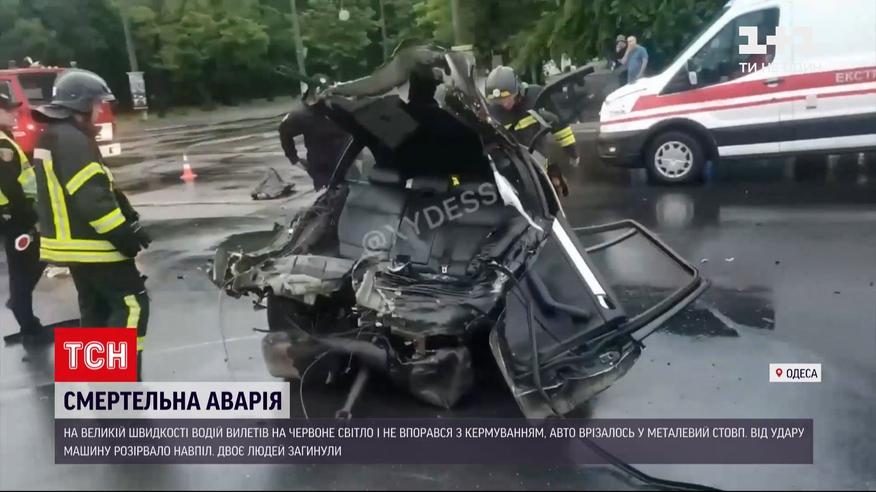 Новости Украины: в Одессе легковушку разорвало пополам после столкновения со столбом