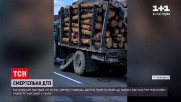 Деталь от колеса лесовоза улетела на ходу и попала в пешехода. Удар был настолько мощным, что мужчине отрезало руку. Случилось это в городе Березное Ровенской области. Сначала пострадавшему оказывала помощь его сестра, потом - медики "скорой", однако из-за большой кровопотери 45-летний мужчина скончался в больнице.