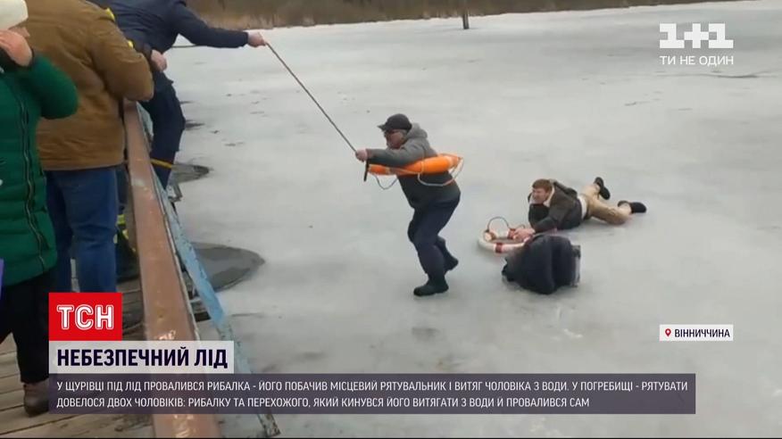 В Винницкой области в различных районах утром пришлось спасать сразу двух рыбаков - они рискнули выйти на тонкий лед и провалились. В Щуровке мужчину, который зовет за помощью из воды, увидел местный спасатель - это и спасло рыбалке жизни. А в Погребище в прорубь упал 68-летний мужчина. Утопленника увидел прохожий, бросился вытаскивать его самостоятельно, но достать рыбалку не смог. Лед был такой хрупкий, что мужчина тоже оказался в ледяной ловушке. Крики о помощи услышали местные, они и вызвали спасателей.