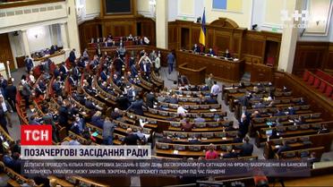 Сразу три внеочередных заседания проведет сегодня Верховная Рада. Сначала народные избранники планируют обсудить обострение ситуации на фронте. Заслушают доклад начальника Генштаба Вооруженных сил. А после этого должны принять постановление, в котором осудят действия России. Другое постановление будет касаться беспорядков на Банковой, когда протестующие против заключения Стерненка повредили фасад Офиса президента. Кроме того планируют прекратить полномочия двух нардепов. А еще обсудить дату внеочередных выборов мэра Харькова. А уже после этого перейдут к законам.