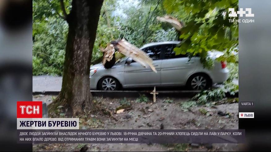 Ночной ураган во Львове. Два человека погибли. Около девяти вечера в городе началась гроза. Поднялся сильный ветер, который валил деревья. Одно упало в Стрыйском парке на скамейку, где сидели 20-летний парень и 18-летняя девушка. Оба погибли на месте. Всего во Львове непогода повалила десятки деревьев.